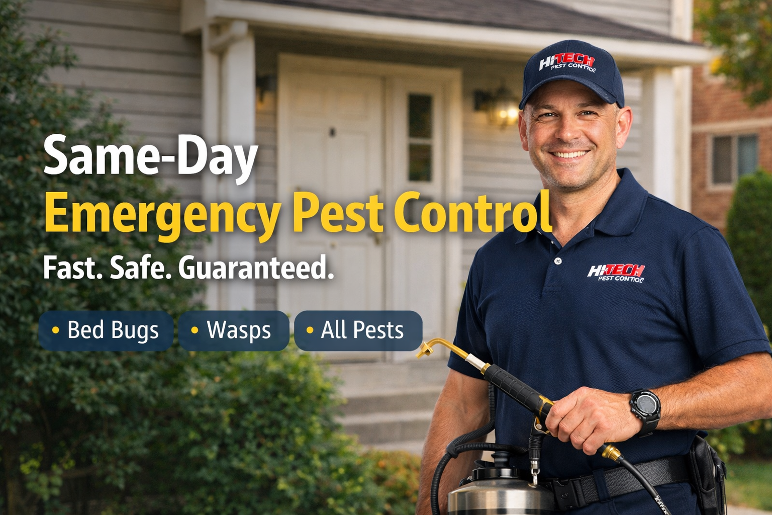 - Emergency same day services, pests don’t wait, and neither do we
